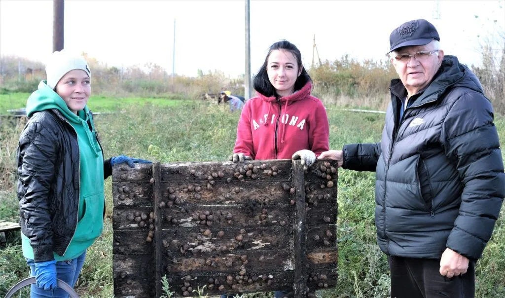 Нині в господарстві відбувається збір «урожаю» равликів. Задля цього, як зазначила одна з постійних працівників Ніна Чудінович, залучають місцевих — люди з радістю беруться за будь-яку роботу, адже в селі з нею дуже сутужно. Виявила бажання попрацювати й вимушена переселенка з Чугуєва, що на Харківщині, Тетяна Андреєва. «Хочеться заробити бодай якусь копійку, — ділиться жінка, — бо тієї пенсії поки дочекаєшся. Із 2 тисяч «переселенських» коштів платимо за дім, який винаймаємо в селі. Наше житло в Чугуєві ціле, але без вікон і дверей — усе повилітало. Відверто кажучи, раніше ніколи не думала, що путін закидатиме нас ракетами. Ми з чоловіком та сином спершу сиділи в підвалі, а потім вирішили перебратися від біди подалі. Люди тут дуже добрі — приносять сало, яйця, інші продукти. Але додому все одно тягне. Хоч мій чоловік Володимир, якого періодично змушує їздити до рідного міста робота, говорить: ти собі не уявляєш, яким нині став Чугуїв».